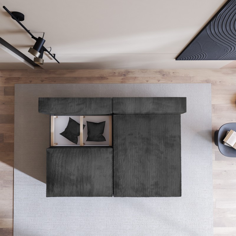 Masseno Narożnik FIORO z funkcją spania i pojemnikiem na pościel Narozniki L, Rozkładana sofa - Grafitowy, POSO 34