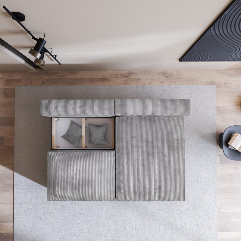 Masseno Narożnik FIORO z funkcją spania i pojemnikiem na pościel Narozniki L, Rozkładana sofa - Jasnoszary, POSO 55