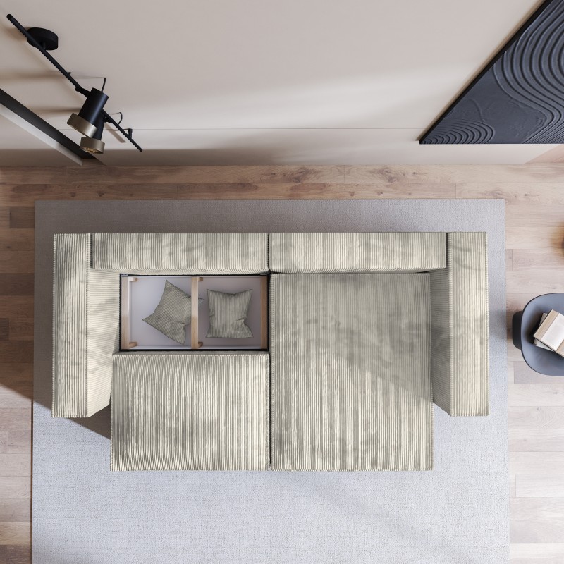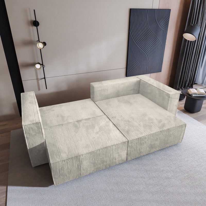 Masseno Narożnik NERIO z funkcją spania i pojemnikiem na pościel Narozniki L, Rozkładana sofa - Kremowy, POSO 100