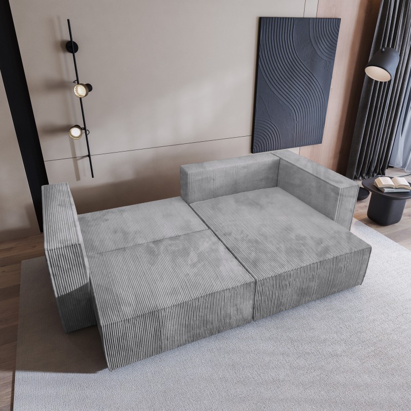 Masseno Narożnik NERIO z funkcją spania i pojemnikiem na pościel Narozniki L, Rozkładana sofa - Jasnoszary, POSO 55