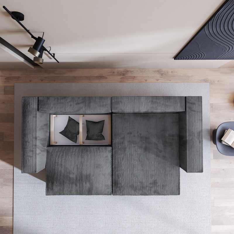 W kilka sekund narożnik zamienia się w wygodne łóżko, oferując komfortowe miejsce do snu dla Twoich gości. Możesz zamówić mechanizm automatyczny, który pozwoli Ci na jeszcze łatwiejsze korzystanie z funkcji spania.