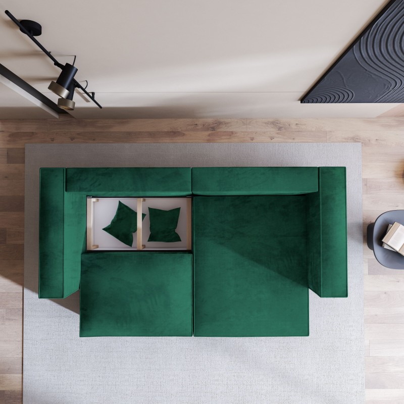 Masseno Narożnik NERIO z funkcją spania i pojemnikiem na pościel Narozniki L, Rozkładana sofa - Butelkowa zieleń, MONOLITH 37