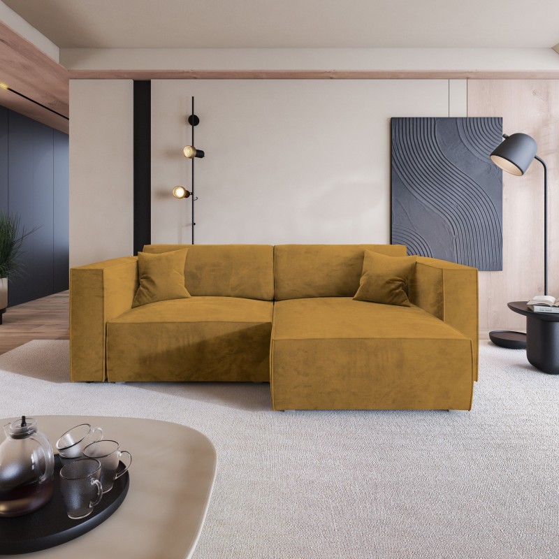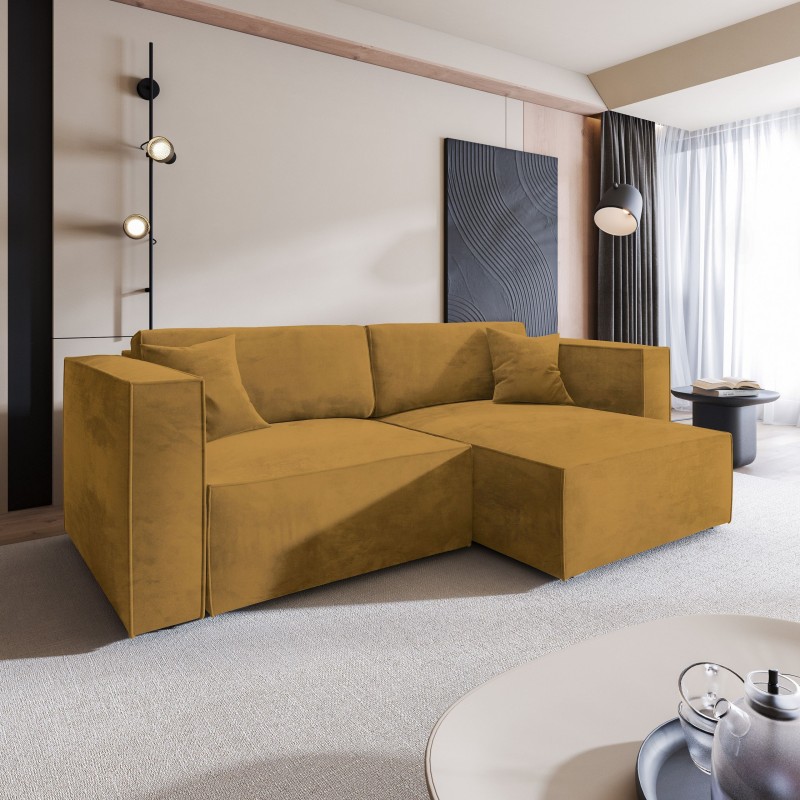 Masseno Narożnik NERIO z funkcją spania i pojemnikiem na pościel Narozniki L, Rozkładana sofa - Żółty, MONOLITH 48