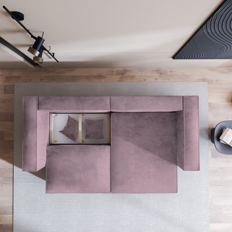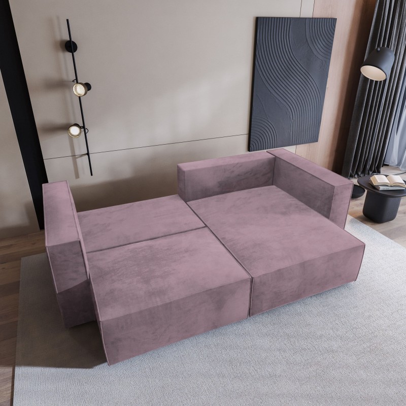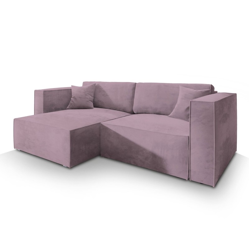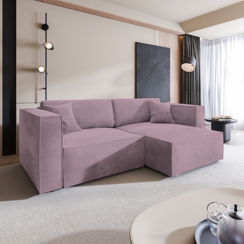 Masseno Narożnik NERIO z funkcją spania i pojemnikiem na pościel Narozniki L, Rozkładana sofa - Wrzosowy, MONOLITH 62