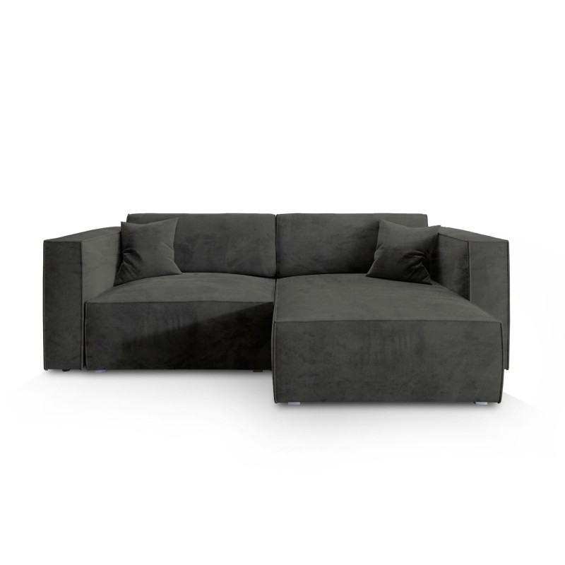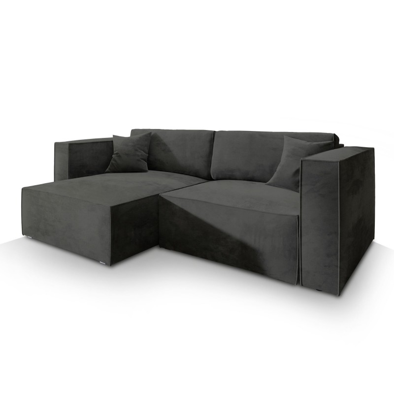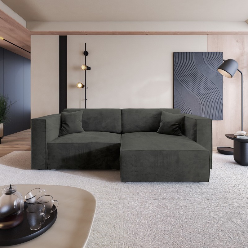Masseno Narożnik NERIO z funkcją spania i pojemnikiem na pościel Narozniki L, Rozkładana sofa - Czarny, MONOLITH 95