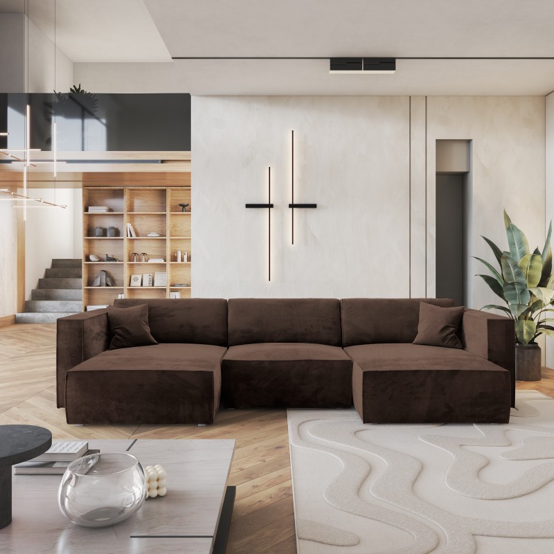 Masseno Narożnik SARMO z funkcją spania i pojemnikiem na pościel Narozniki U, Rozkładana sofa - Brązowy, MONOLITH 29