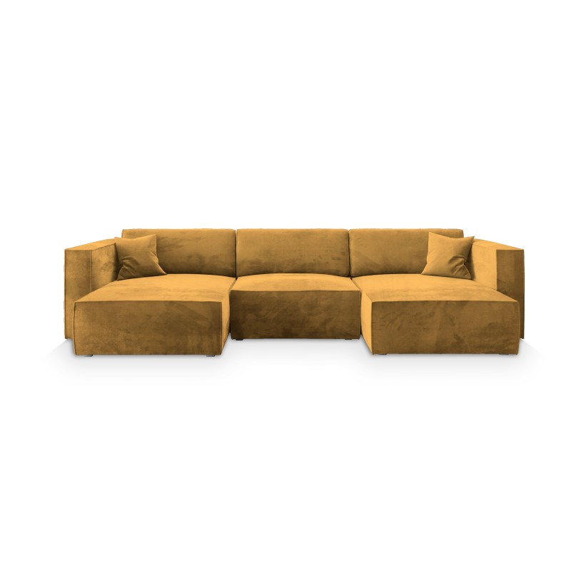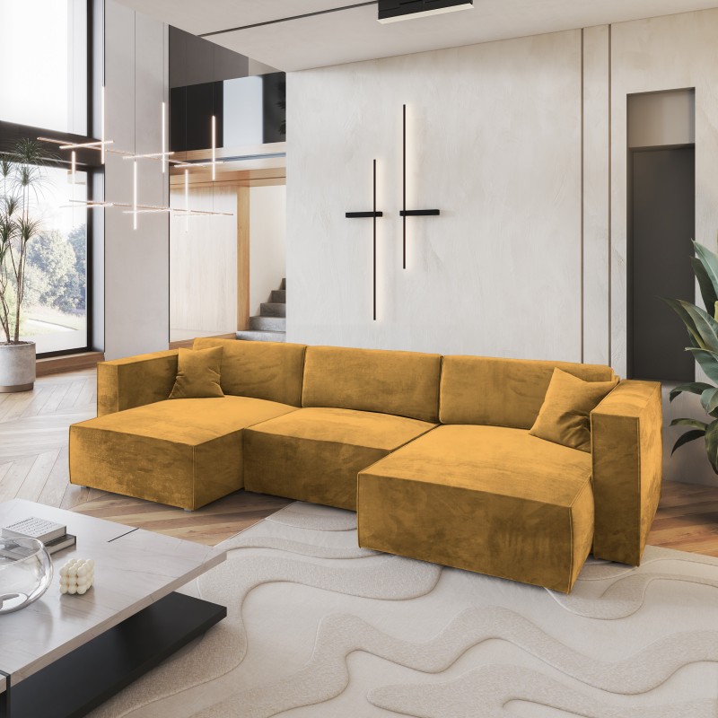 Masseno Narożnik SARMO z funkcją spania i pojemnikiem na pościel Narozniki U, Rozkładana sofa - Żółty, MONOLITH 48