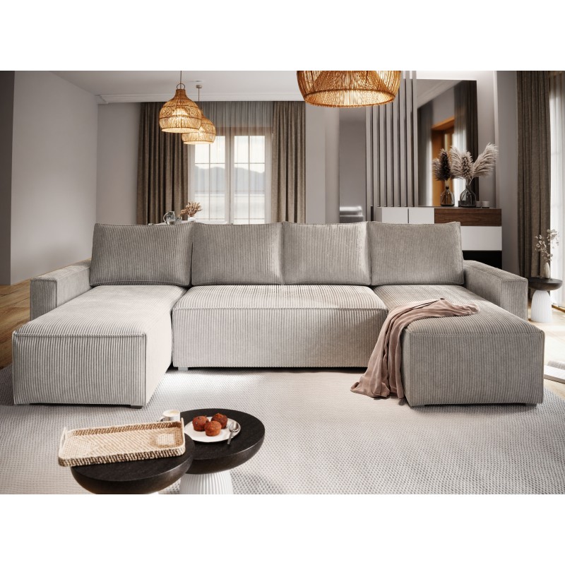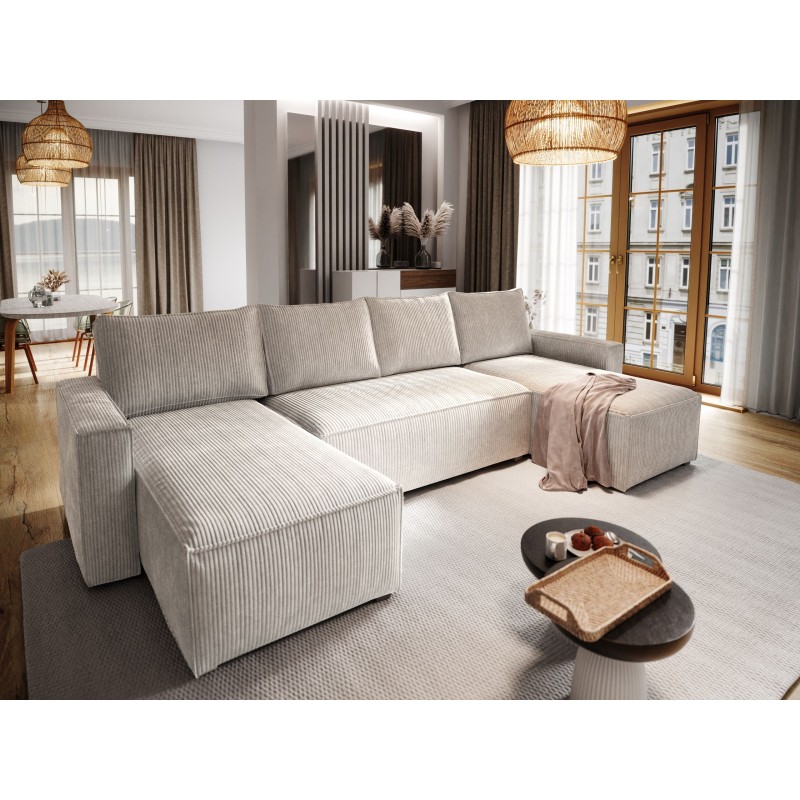 Masseno Narożnik ASPRA z funkcją spania i pojemnikiem na pościel Narozniki U, Rozkładana sofa - Kremowy, POSO 100