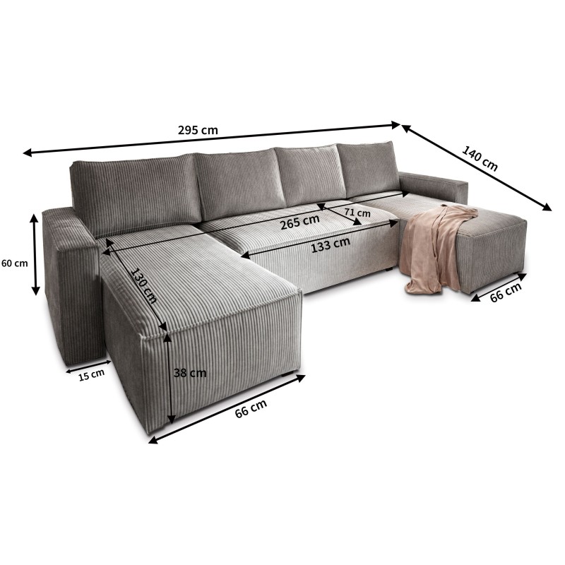 Dzięki swoim dużym rozmiarom, podczas długiego seansu filmowego, każdy członek Twojej rodziny odnajdzie miejsce dla siebie. Zbyt zmęczony, żeby iść do łóżka? – Rozłóż mebel szybkim ruchem i ciesz się ogromną funkcją spania. Charakterystyczny kształt narożnika pozwala na wygodne rozmieszczenie wielu osób, tworząc przytulną przestrzeń do relaksu i spotkań.
