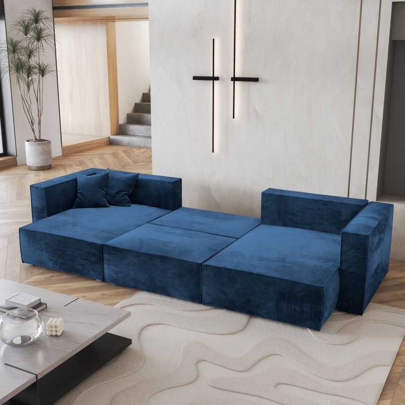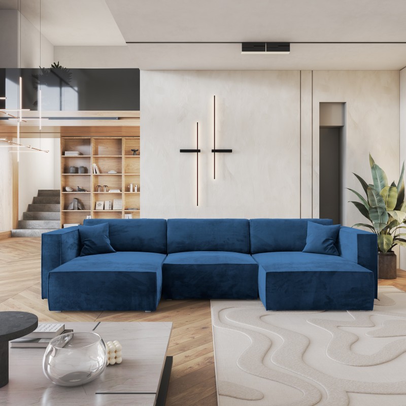 Masseno Narożnik SARMO z funkcją spania i pojemnikiem na pościel Narozniki U, Rozkładana sofa - Niebieski, MONOLITH 77