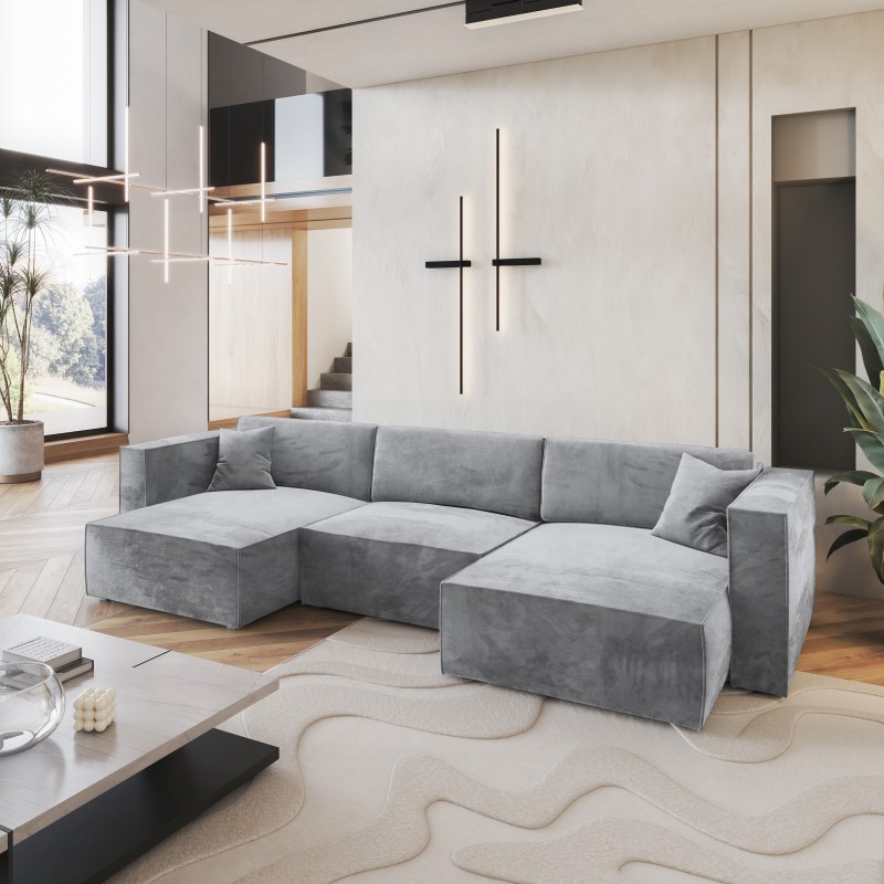 Wieczór w rodzinnym gronie. Dzieci oglądają bajki, ktoś rozsiada się z książką, a Ty z kubkiem gorącej herbaty wyciągasz nogi na wygodnym siedzisku. SARMO to narożnik, który łączy wszystkich – oferując przestrzeń do relaksu, rozmów i wspólnych chwil. Dzięki swojemu kształtowi w literę U, zapewnia wystarczająco dużo miejsca dla domowników i gości, jednocześnie tworząc wyjątkową, przytulną strefę wypoczynku.