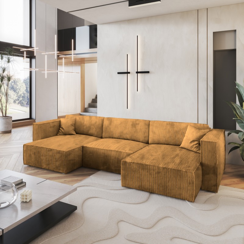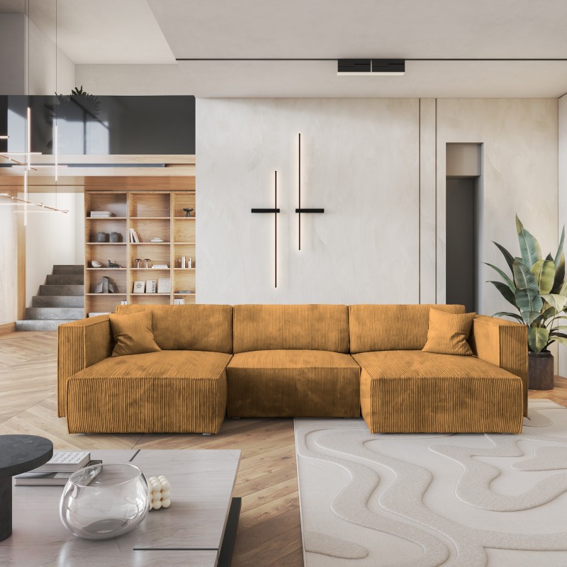 Masseno Narożnik SARMO z funkcją spania i pojemnikiem na pościel Narozniki U, Rozkładana sofa - Żółty, POSO 01