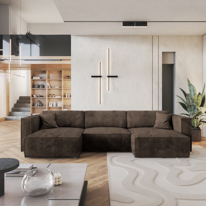 Masseno Narożnik SARMO z funkcją spania i pojemnikiem na pościel Narozniki U, Rozkładana sofa - Brązowy, POSO 06