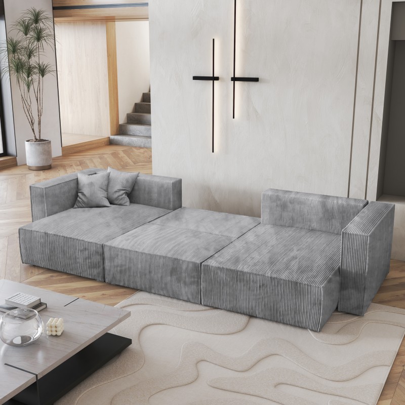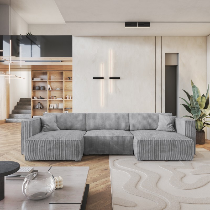 Masseno Narożnik SARMO z funkcją spania i pojemnikiem na pościel Narozniki U, Rozkładana sofa - Jasnoszary, POSO 55