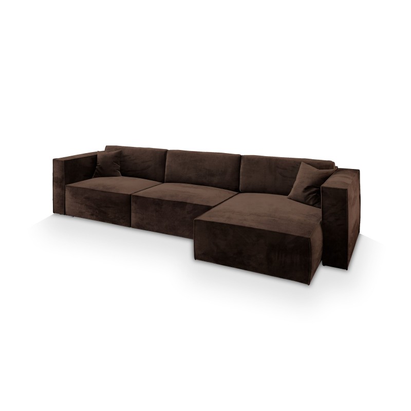 Aksamitna tkanina Monolith nadaje narożnikowi elegancki wygląd, a jednocześnie jest niezwykle praktyczna. Jest odporna na plamy i łatwa w czyszczeniu, co czyni ją idealnym wyborem dla rodzin z dziećmi lub zwierzętami.