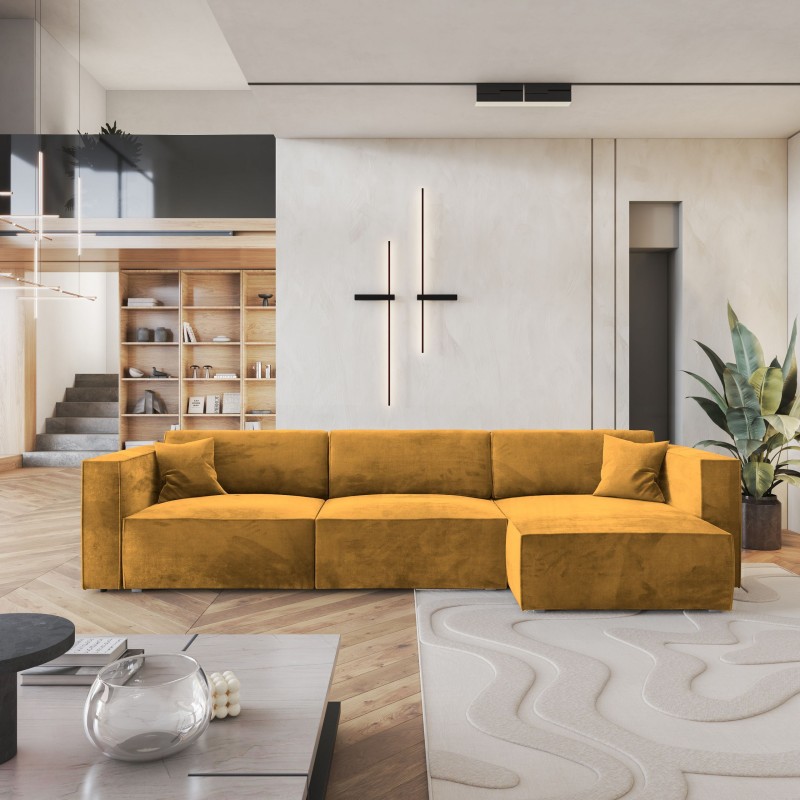 Masseno Narożnik TOLMO z funkcją spania i pojemnikiem na pościel Narozniki L, Rozkładana sofa - Żółty, MONOLITH 48