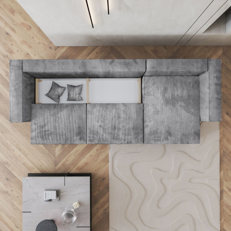 Funkcja spania umożliwia szybkie przekształcenie narożnika w duże, komfortowe łóżko. To praktyczne rozwiązanie dla każdego, nie raz został zaskoczony przez niezapowiedzianych gości.