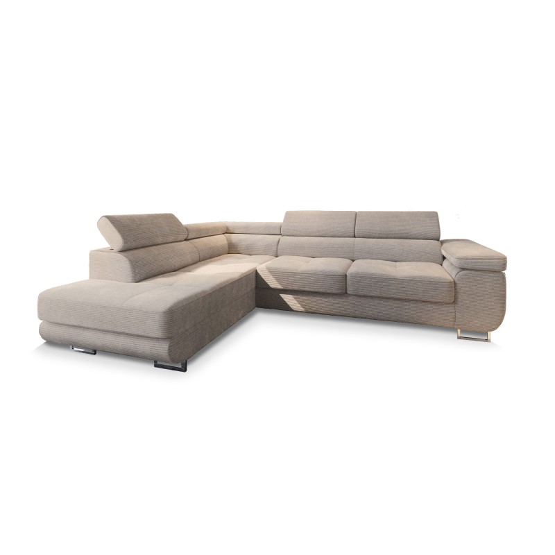 Masseno Narożnik APIRO z funkcją spania i pojemnikiem na pościel Narozniki L, Rozkładana sofa - Beżowy, POSO 02
