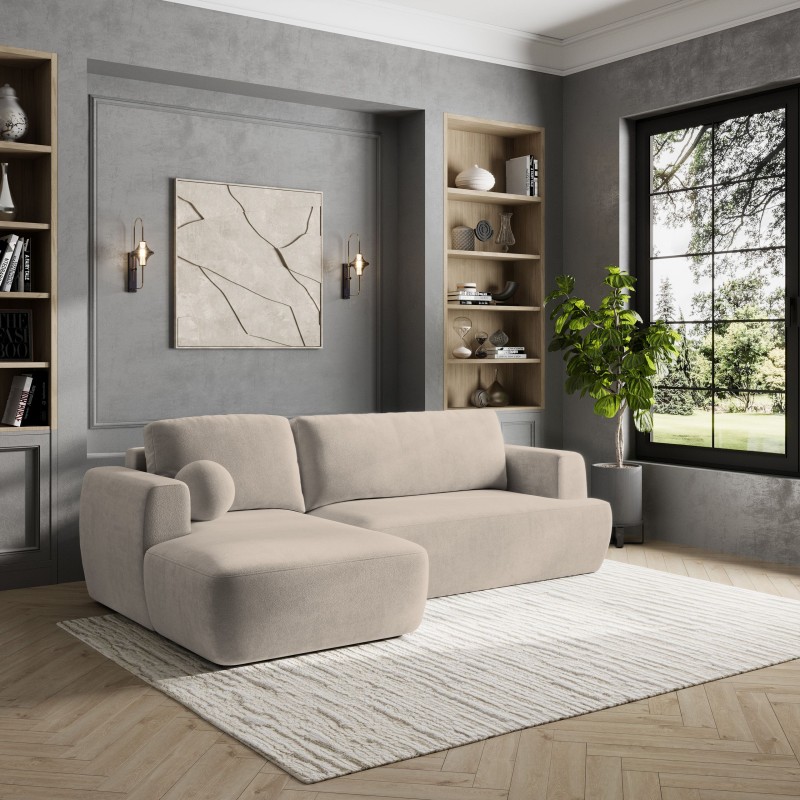 Dostępność w trzech wyjątkowych tkaninach pozwala dopasować narożnik do indywidualnych preferencji. Bukla - Now Or Never to miękkość i przytulność, sztruks - POSO dodaje strukturalnej elegancji, a velvet - Kronos wprowadza aksamitną gładkość i luksusowy wygląd.