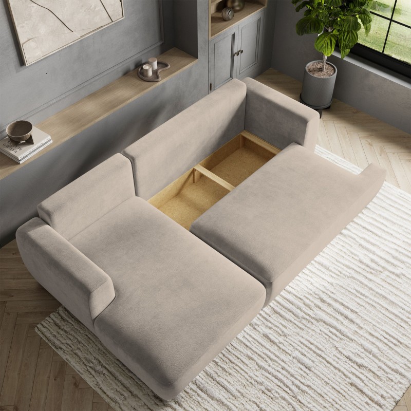 Masseno Narożnik SENTI z funkcją spania i pojemnikiem na pościel Narozniki L, Rozkładana sofa - Beżowy, PAROS 02