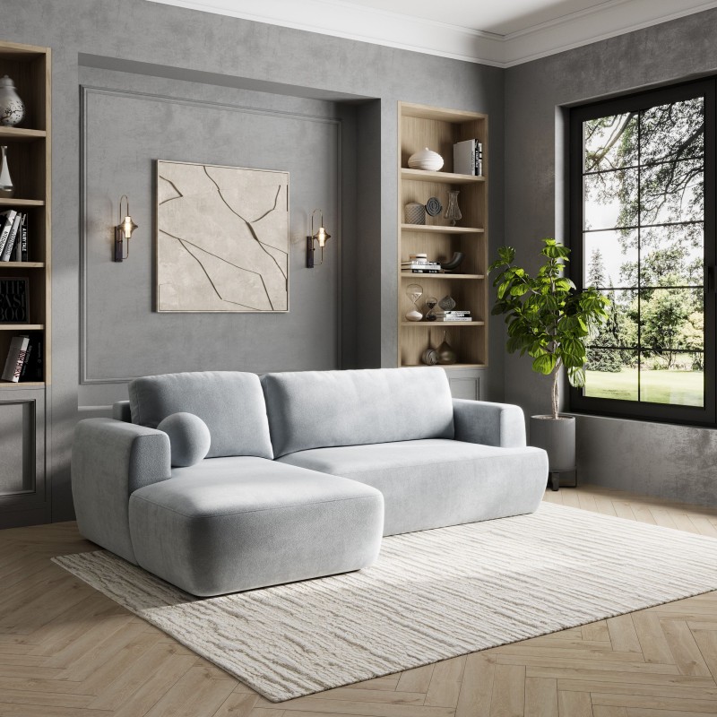 Dostępność w trzech wyjątkowych tkaninach pozwala dopasować narożnik do indywidualnych preferencji. Bukla - Now Or Never to miękkość i przytulność, sztruks - POSO dodaje strukturalnej elegancji, a velvet - Kronos wprowadza aksamitną gładkość i luksusowy wygląd.