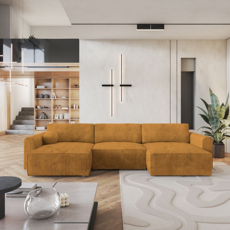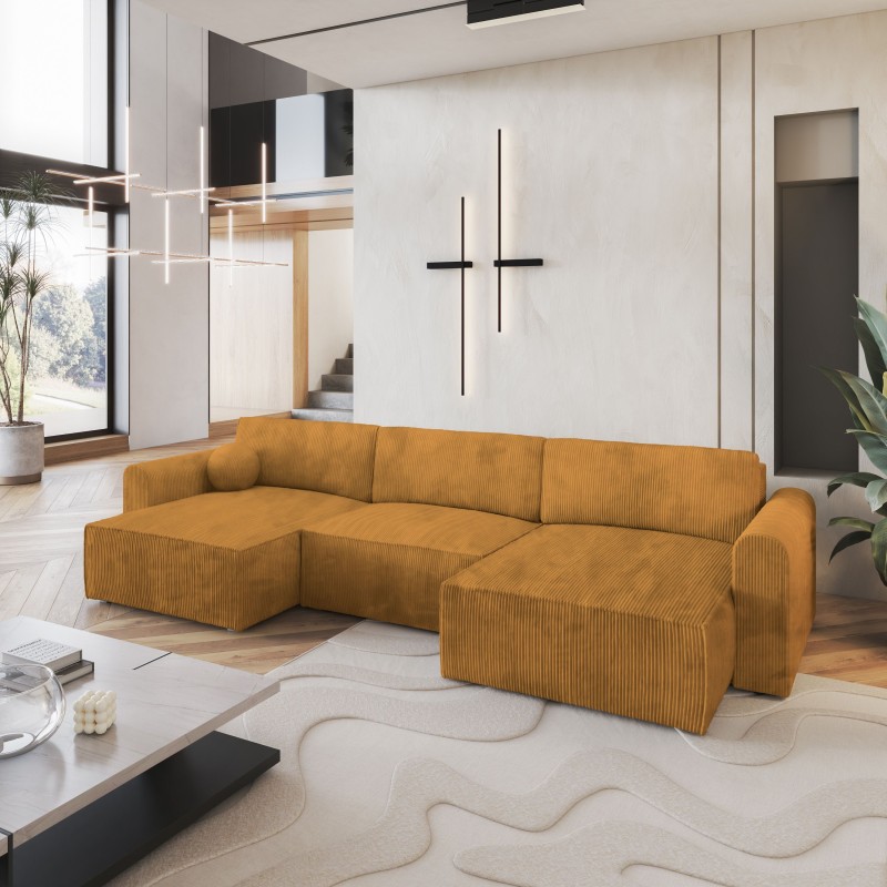 Masseno Narożnik FENTO z funkcją spania i pojemnikiem na pościel Narozniki U, Rozkładana sofa - Żółty, POSO 01