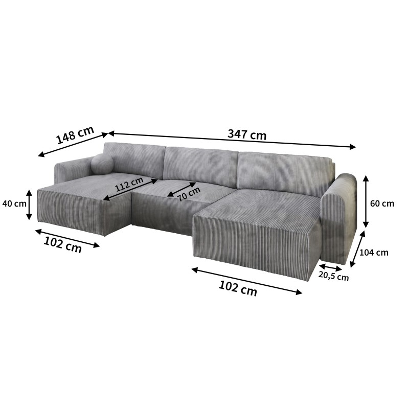 Tkanina POSO wyróżnia się charakterystyczną, prążkowaną strukturą sztruksu, która nie tylko wygląda stylowo, ale również zapewnia wyjątkową miękkość i przyjemne doznania w dotyku. FENTO świetnie sprawdzi się zarówno w nowoczesnych, jak i klasycznych wnętrzach, dodając im unikalnego charakteru. FENTO to nie tylko piękny wygląd, ale także maksymalna funkcjonalność. Funkcja spania pozwala w kilka chwil zamienić narożnik w wygodne łóżko, co czyni go idealnym rozwiązaniem dla gości. Pojemny schowek na pościel to praktyczny element, który ułatwia przechowywanie koców, poduszek i innych tekstyliów. Dodatkowym atutem jest designerska poduszka w kształcie kuli, która pełni zarówno funkcję dekoracyjną, jak i praktyczną – może służyć jako wsparcie dla odcinka lędźwiowego lub stanowić ozdobę wnętrza.