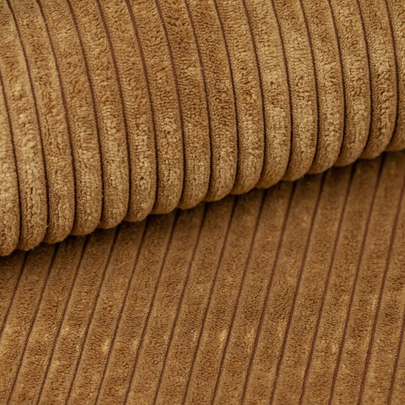 Obicie wykonane z wysokiej jakości tkaniny sztruksowej POSO wyróżnia się prążkowaną, mięsistą strukturą, która nadaje wnętrzu wyjątkowego charakteru. Materiał ten jest odporny na przetarcia, łatwy w pielęgnacji i zapewnia przyjemne doznania dotykowe, co czyni go idealnym wyborem do codziennego użytku.