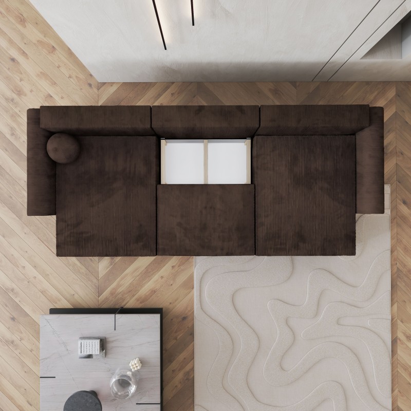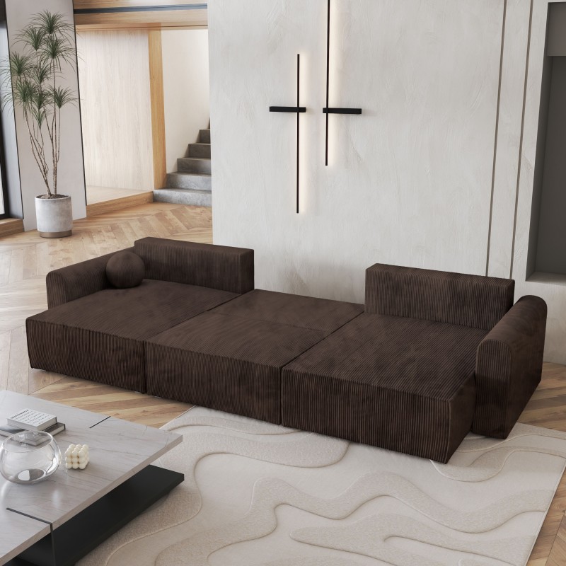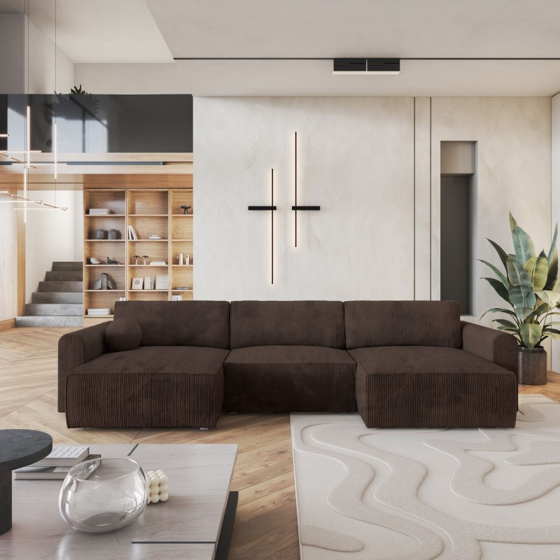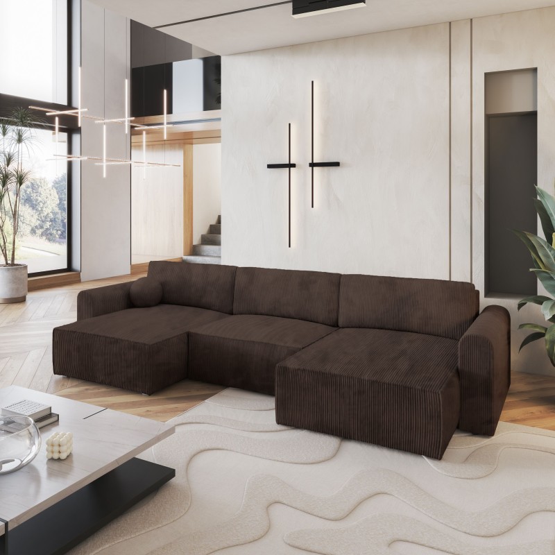 Masseno Narożnik FENTO z funkcją spania i pojemnikiem na pościel Narozniki U, Rozkładana sofa - Brązowy, POSO 06