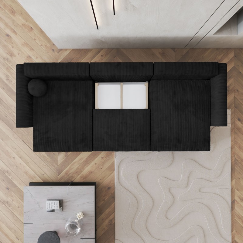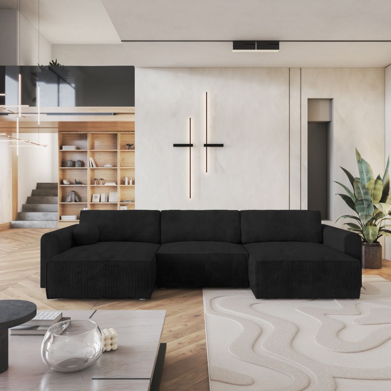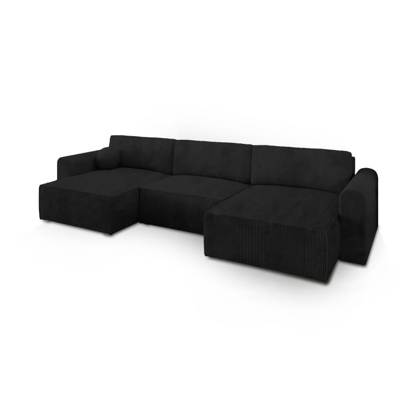 Masseno Narożnik FENTO z funkcją spania i pojemnikiem na pościel Narozniki U, Rozkładana sofa - Czarny, POSO 135
