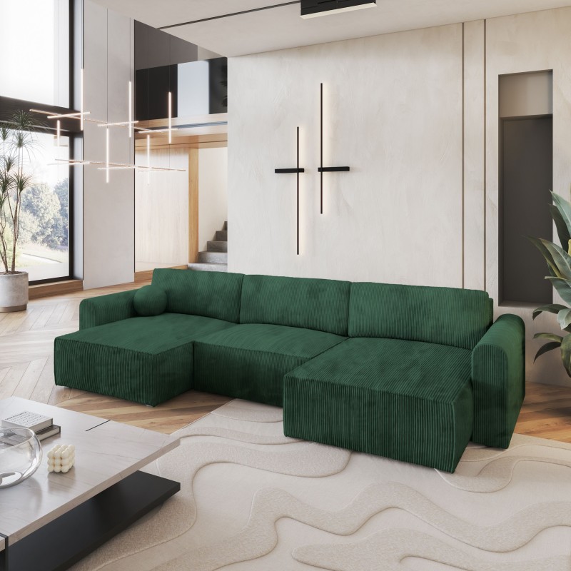 Masseno Narożnik FENTO z funkcją spania i pojemnikiem na pościel Narozniki U, Rozkładana sofa - Butelkowa zieleń, POSO 14