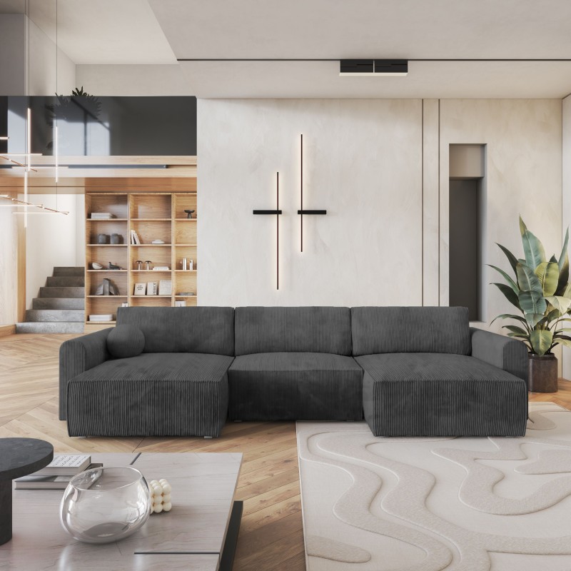 Masseno Narożnik FENTO z funkcją spania i pojemnikiem na pościel Narozniki U, Rozkładana sofa - Grafitowy, POSO 34