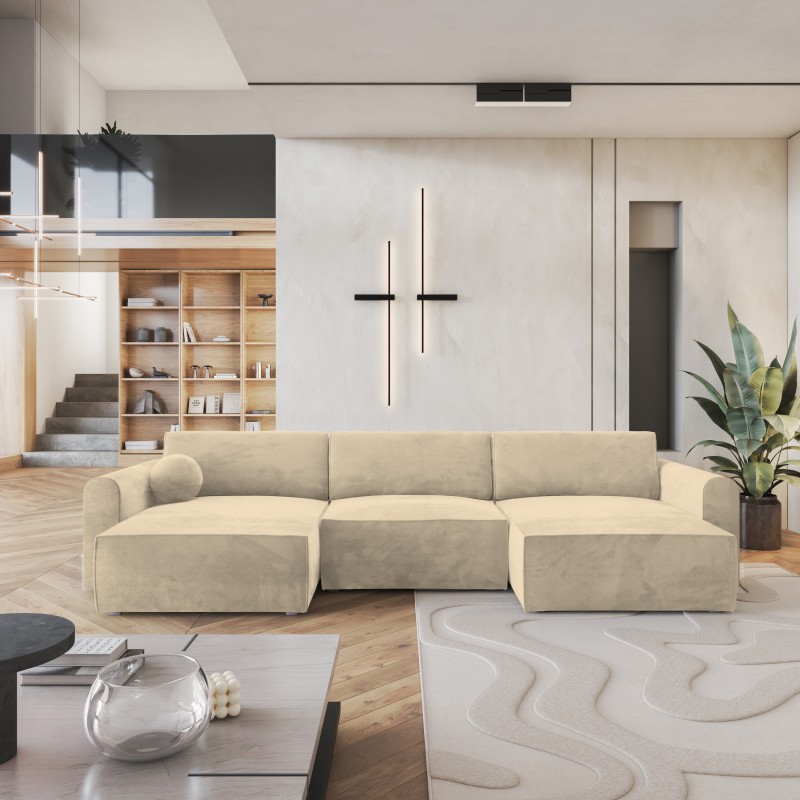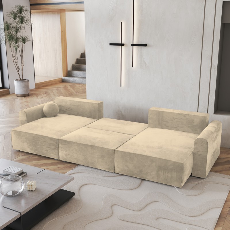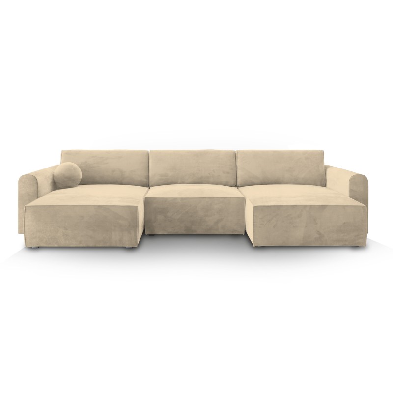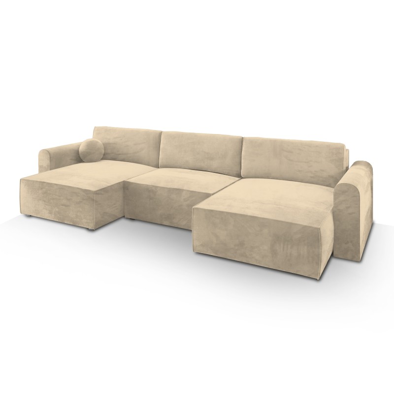 Masseno Narożnik FENTO z funkcją spania i pojemnikiem na pościel Narozniki U, Rozkładana sofa - Kremowy, MONOLITH 04