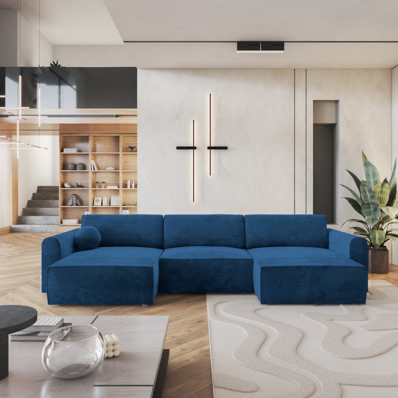 Masseno Narożnik FENTO z funkcją spania i pojemnikiem na pościel Narozniki U, Rozkładana sofa - Niebieski, MONOLITH 77