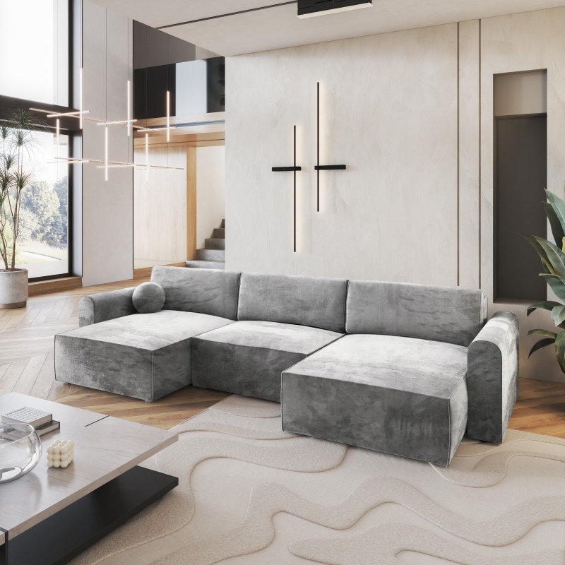 Masseno Narożnik FENTO z funkcją spania i pojemnikiem na pościel Narozniki U, Rozkładana sofa - Jasnoszary, MONOLITH 84