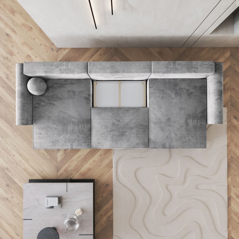 Tapicerowany tył narożnika sprawia, że można go ustawić w dowolnym miejscu, niezależnie od układu wnętrza. Dzięki temu FENTO świetnie sprawdzi się zarówno w przestronnych salonach, jak i otwartych pomieszczeniach.