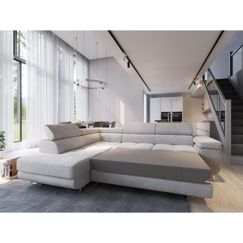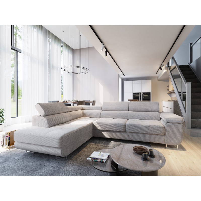 Masseno Narożnik APIRO z funkcją spania i pojemnikiem na pościel Narozniki L, Rozkładana sofa - Kremowy, POSO 100