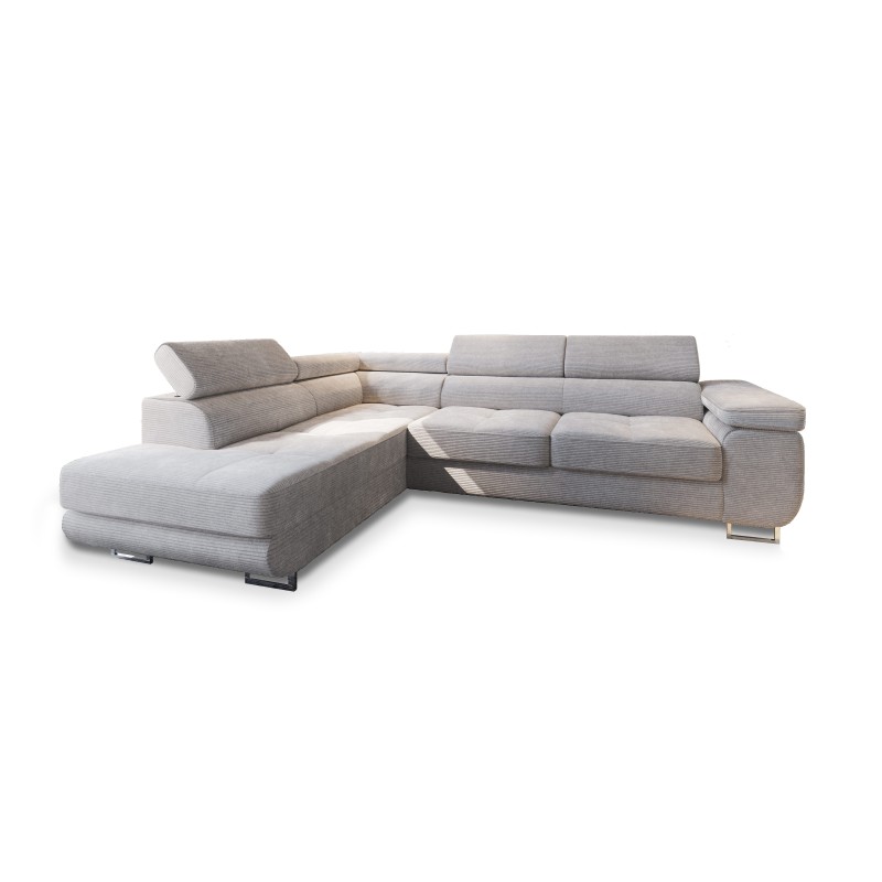 Narożnik występuje w wersji prawostronnej, oraz lewostronnej, a przede wszystkim jest meblem wolnostojącym – z każdej strony obity jest tym samym typem materiału, dzięki tym cechom dopasujesz go do swojego pomieszczenia, idealnie sprawdzi się jako centralna wyspa Twojego salonu.