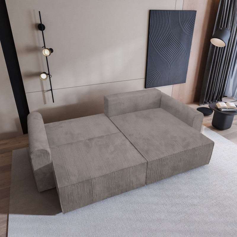 Masseno Narożnik FIANO z funkcją spania i pojemnikiem na pościel Narozniki L, Rozkładana sofa - Beżowy, POSO 02