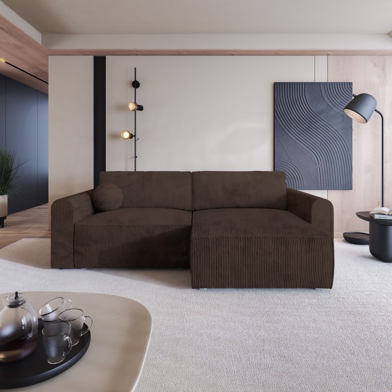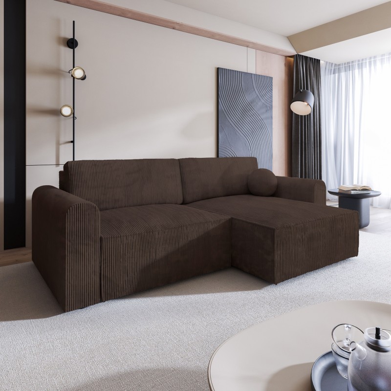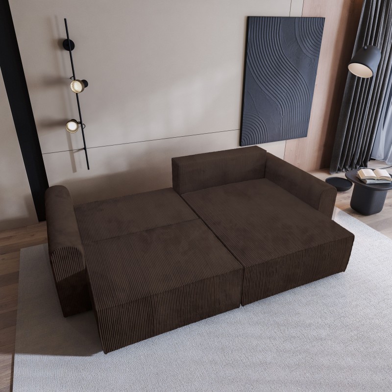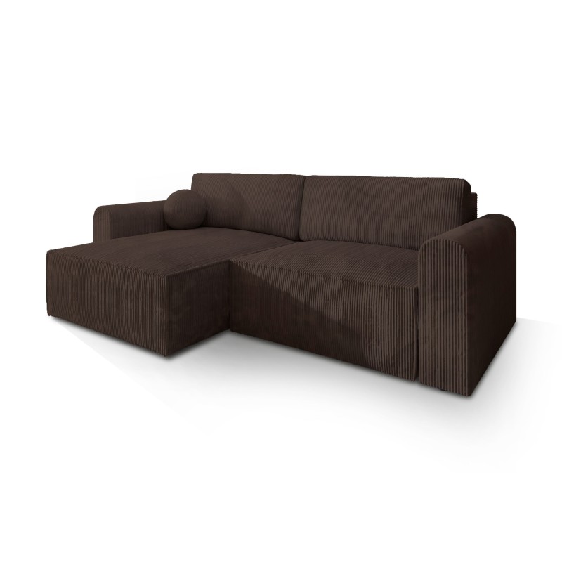 Masseno Narożnik FIANO z funkcją spania i pojemnikiem na pościel Narozniki L, Rozkładana sofa - Brązowy, POSO 06