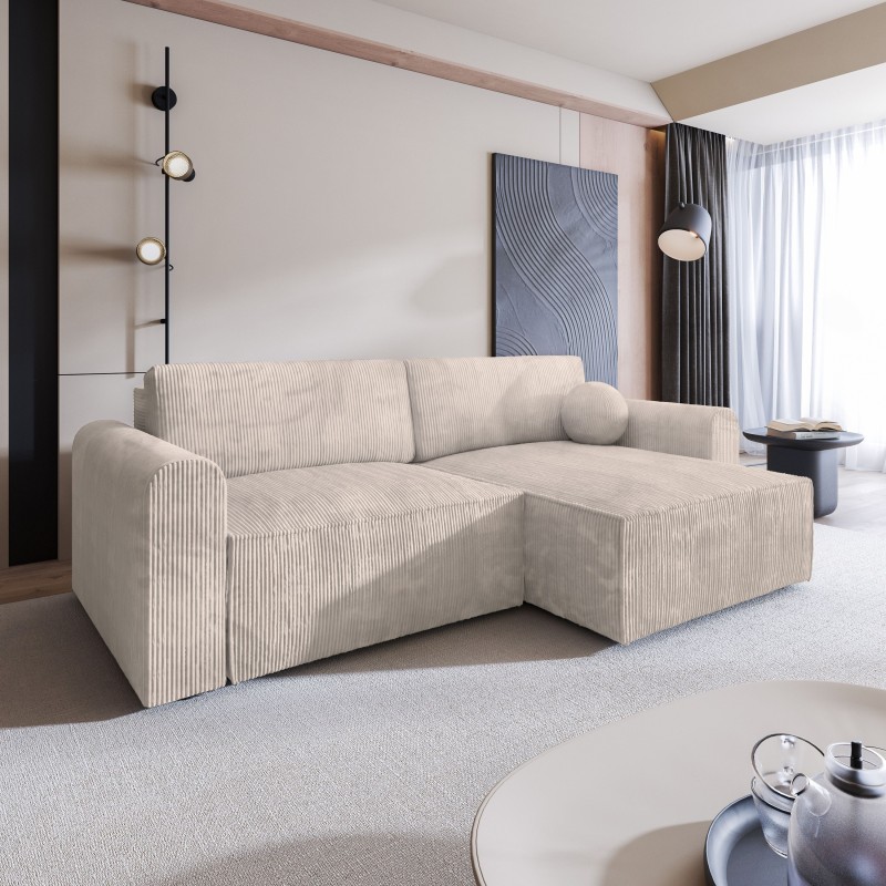 Masseno Narożnik FIANO z funkcją spania i pojemnikiem na pościel Narozniki L, Rozkładana sofa - Kremowy, POSO 100
