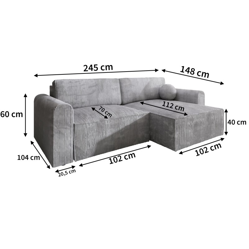 FIANO w wersji POSO to propozycja dla miłośników modnego sztruksu, który jest nie tylko stylowy, ale również niezwykle przyjemny w dotyku. Tkanina POSO wyróżnia się wyraźnym, prążkowanym splotem, który nadaje jej miękkość i subtelną strukturę. Materiał ten jest także trwały i odporny na ścieranie, dzięki czemu narożnik zachowa swój piękny wygląd na długi czas. Oprócz atrakcyjnego wyglądu, narożnik FIANO oferuje maksymalną funkcjonalność. Funkcja spania pozwala w prosty sposób zamienić mebel w wygodne łóżko, co sprawia, że doskonale sprawdzi się jako dodatkowe miejsce do spania dla gości.