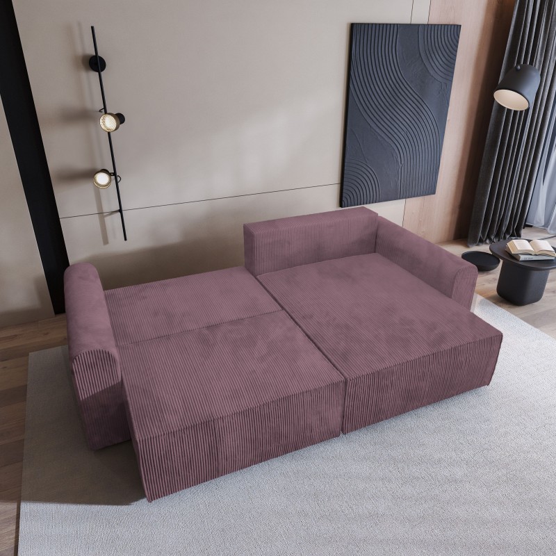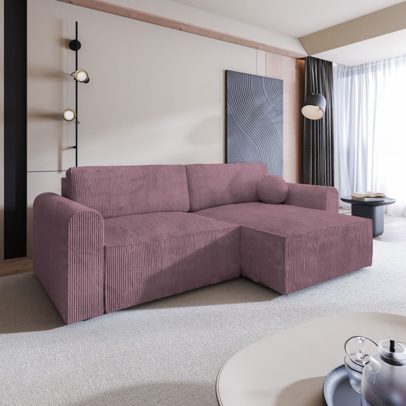 Masseno Narożnik FIANO z funkcją spania i pojemnikiem na pościel Narozniki L, Rozkładana sofa - Wrzosowy, POSO 130