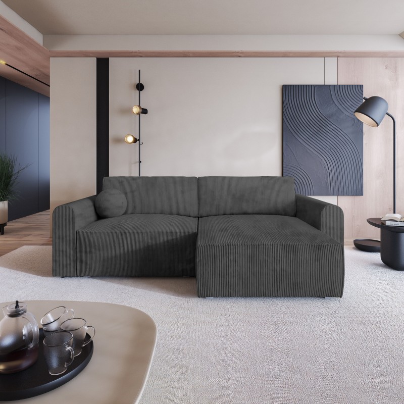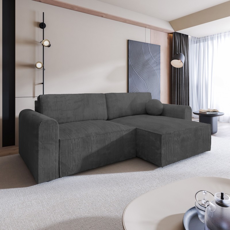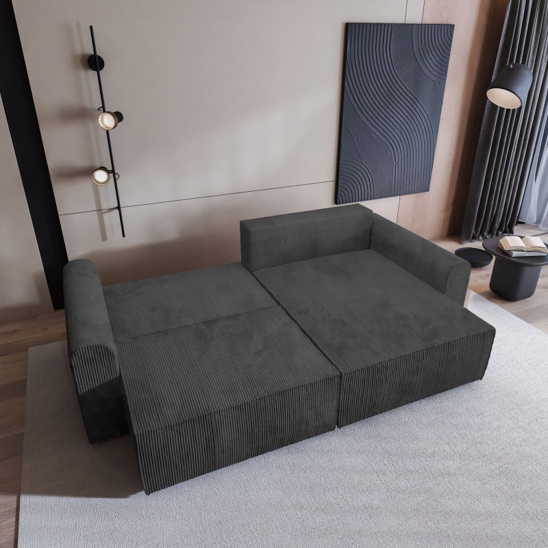 Masseno Narożnik FIANO z funkcją spania i pojemnikiem na pościel Narozniki L, Rozkładana sofa - Grafitowy, POSO 34