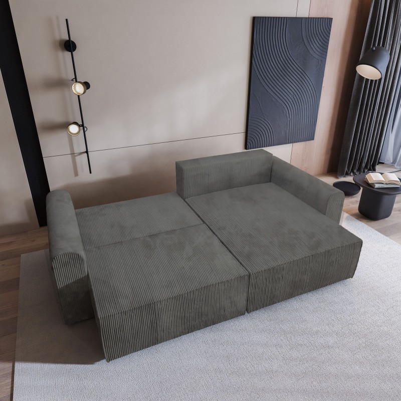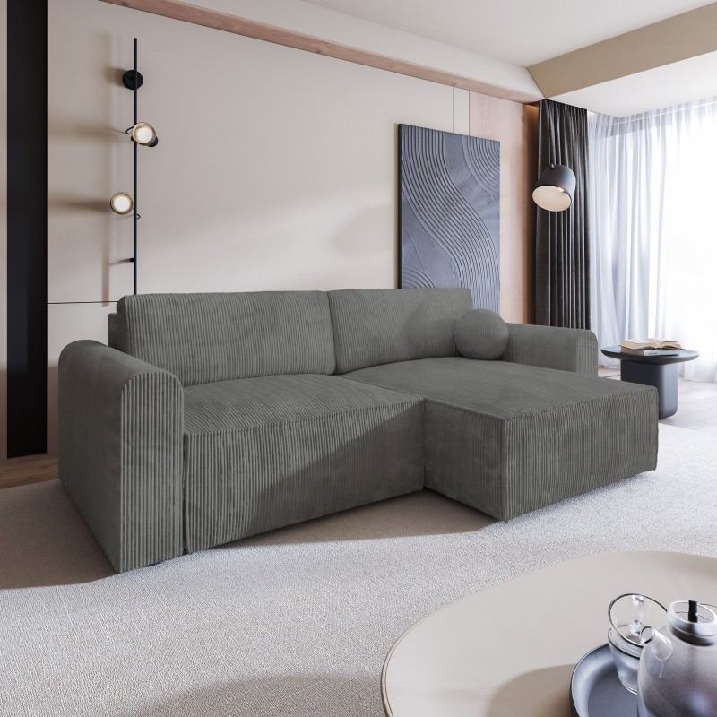 Masseno Narożnik FIANO z funkcją spania i pojemnikiem na pościel Narozniki L, Rozkładana sofa - Szary, POSO 60