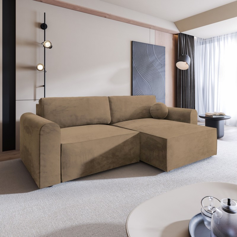 Masseno Narożnik FIANO z funkcją spania i pojemnikiem na pościel Narozniki L, Rozkładana sofa - Beżowy, MONOLITH 09