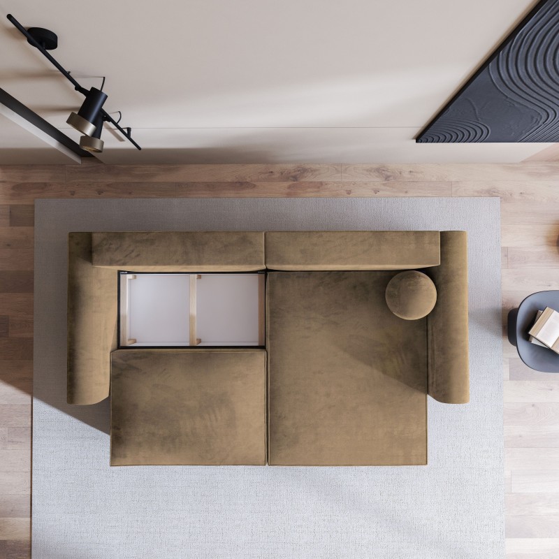 Możliwość zmiany strony narożnika – Narożnik można montować zarówno w wersji prawostronnej, jak i lewostronnej, co pozwala na dostosowanie mebla do układu pomieszczenia. W razie potrzeby stronę szezlonga można zmienić po czasie, co daje jeszcze większą elastyczność w aranżacji wnętrza.