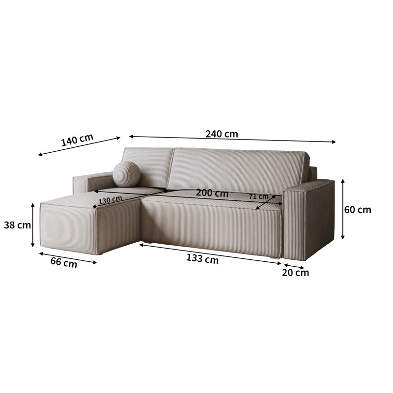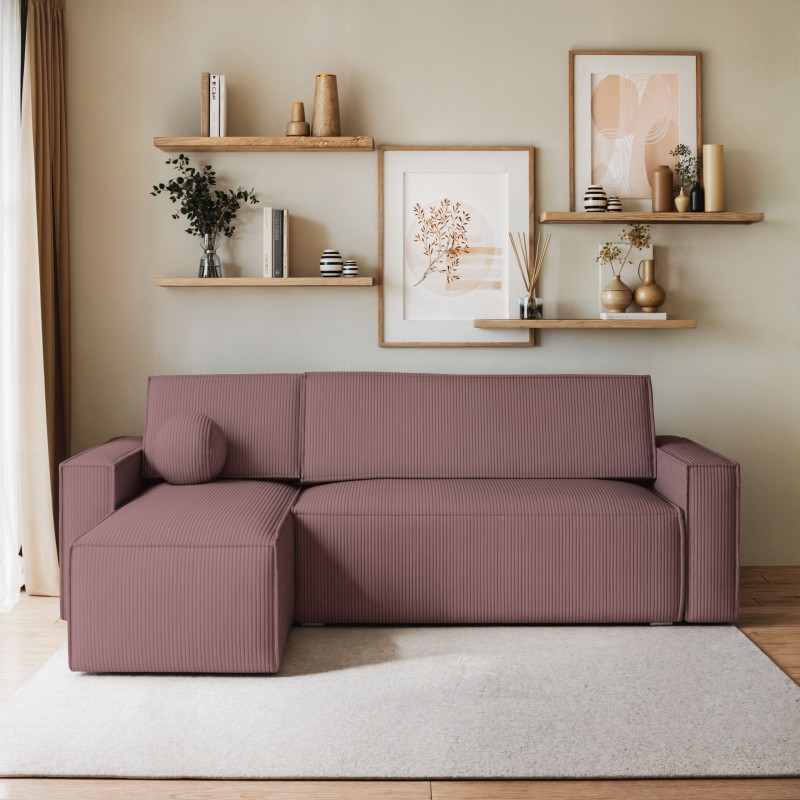 Masseno Narożnik RAVELO z funkcją spania i pojemnikiem na pościel Narozniki L, Rozkładana sofa - Wrzosowy, POSO 130