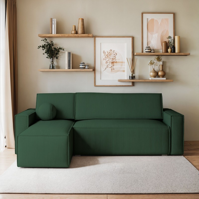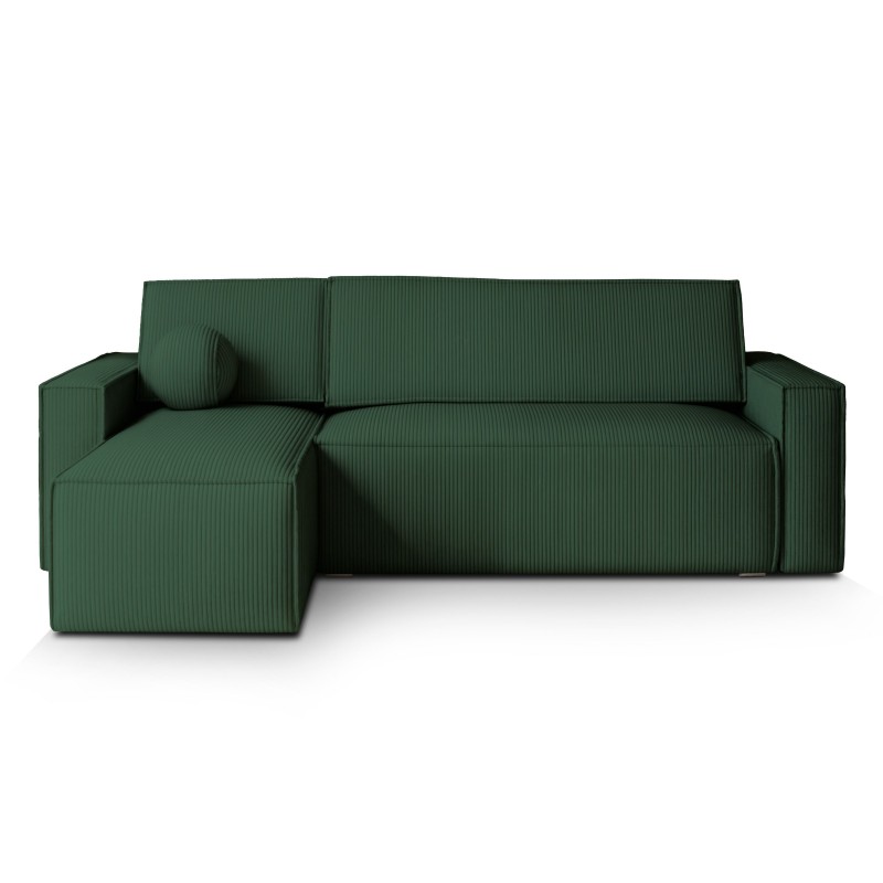 Masseno Narożnik RAVELO z funkcją spania i pojemnikiem na pościel Narozniki L, Rozkładana sofa - Butelkowa zieleń, POSO 14