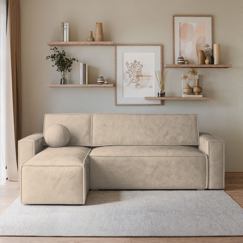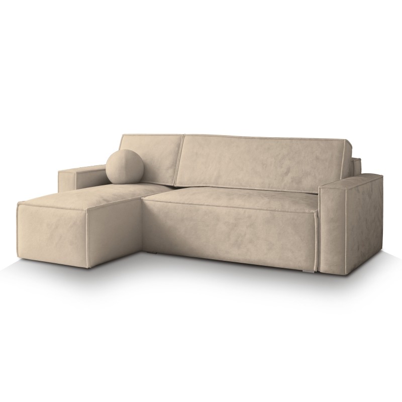 Masseno Narożnik RAVELO z funkcją spania i pojemnikiem na pościel Narozniki L, Rozkładana sofa - Kremowy, MONOLITH 04